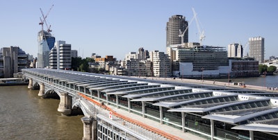 The Blackfriars Bridge is one of only two solar bridges in existence today. The 922-foot bridge was updated in 2012 to add a 4,400 solar panel roof which could generate 900,000 kilowatt hours of electricity annually and reduce over 500 tonnes of carbon dioxide each hear. The Blackfriars Bridge is the first bridge over the River Thames since the London Bridge to generate its own power.