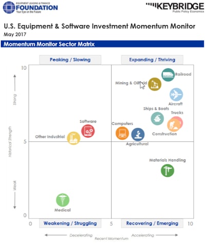 According to the Equipment Leasing & Finance Foundation (Foundation) Q2 Equipment Leasing & Finance Economic Outlook Report, elevated business confidence will boost growth and equipment and software investment will expand by 2.8% in 2017 in most verticals.