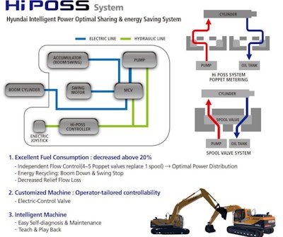 Hyundai says that eventually, all its machines will be outfitted with the Hi-POSS electro-hydraulic hybrid system.