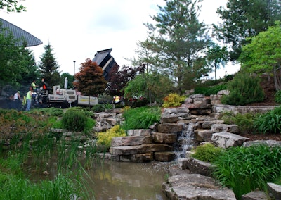 “Most of the landscaping was done prior to our arrival,” says Rick Browley Jr., paving crew chief with Superior says. “Our estimators walked the path with Ken Wenger and pointed out any low branches that might be a problem for the trucks and paver to maneuver. All trimming had to be conducted by the Meijer Garden staff. The paving crew had someone walk ahead to make sure the trucks could maneuver safely and without interruption.”