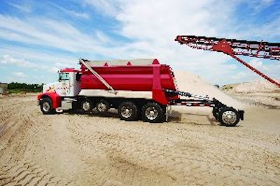 R&M Resources found a solution in the form of the Superdump, which could match the legal payload of its frameless end-dump trailers - roughly 26 tons. "We get the payload of a semi-trailer, plus the speed of a straight truck," says Mike Mullet, owner. "We can pick up a couple more loads a day vs. the end dump. We're able to get in where we want to dump, get the product off quickly and go back for more. Plus, we're able to pick up an extra couple of bucks on the contract because we are placing material exactly where the customer wants it."
